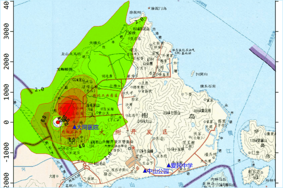 2、计算结果浓度分布图,缺省改为色块图(旧版缺省为等值线图)。