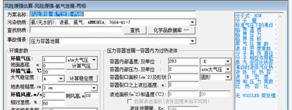 (2)可计算压力容器泄露和液池蒸发等事故源强,并自动判断理查德森数,并判断后续所需采用的模型;