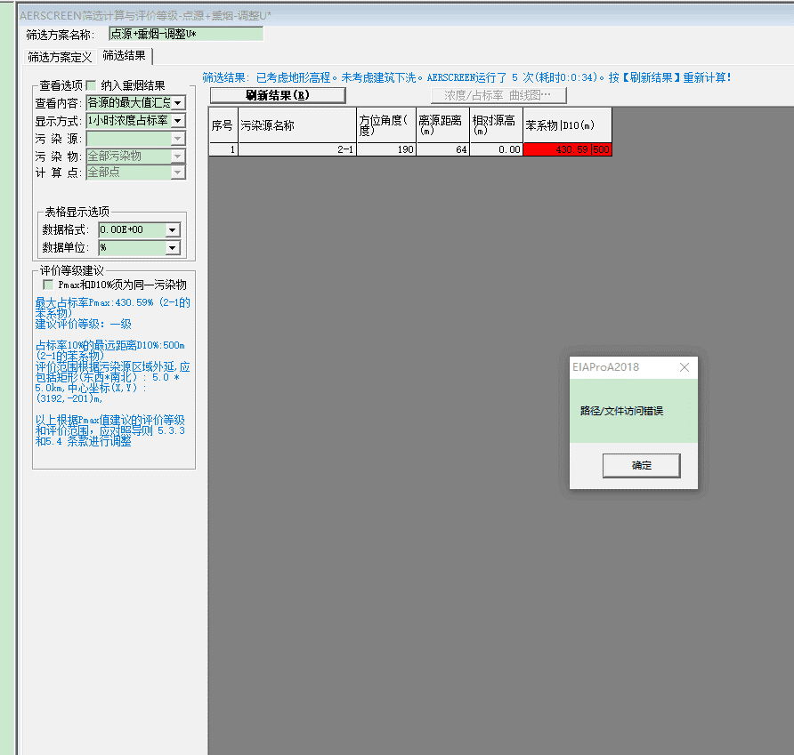 如果是移动了prj文件,一次检查污染物、地形高程、污染源和AERSCREEN筛选气象,看是否已经正确设置。