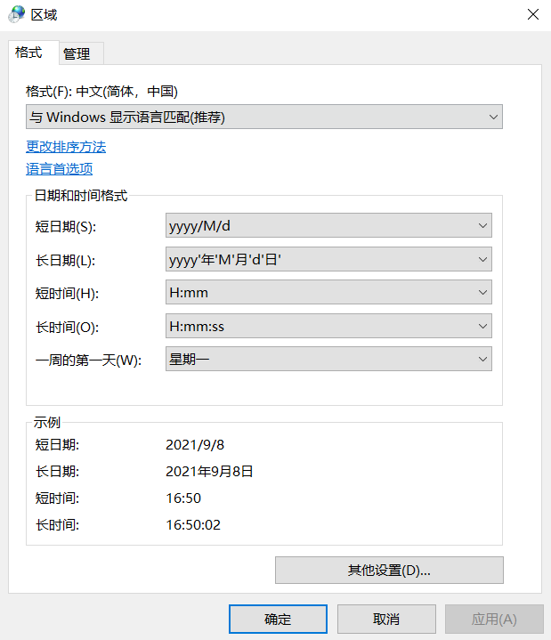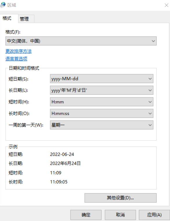 选择电脑控制面板-区域,按照如下样式调整系统时间格式。
