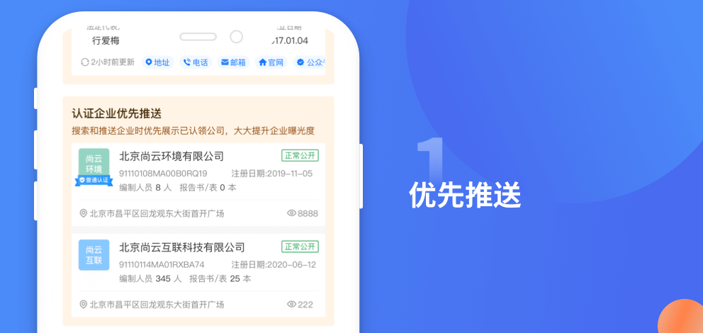 实名认证企业专属标识,搜索展示优先推送,大大提升企业曝光度