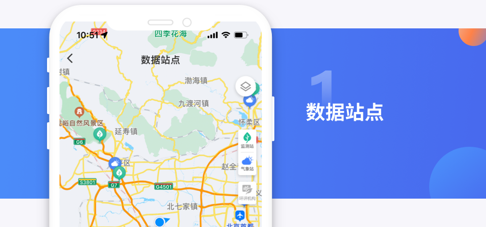 采用地图的方式显示全国的气象站点和环境空气质量站点