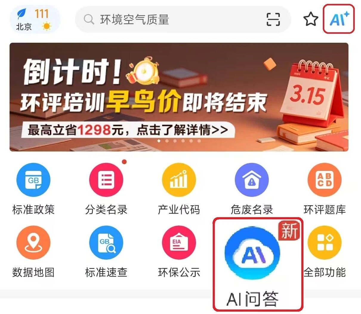 打开环评云助手APP → 首页点击AI问答/AI+ →点击AI审核, 即刻开启尚云AI智能服务▼