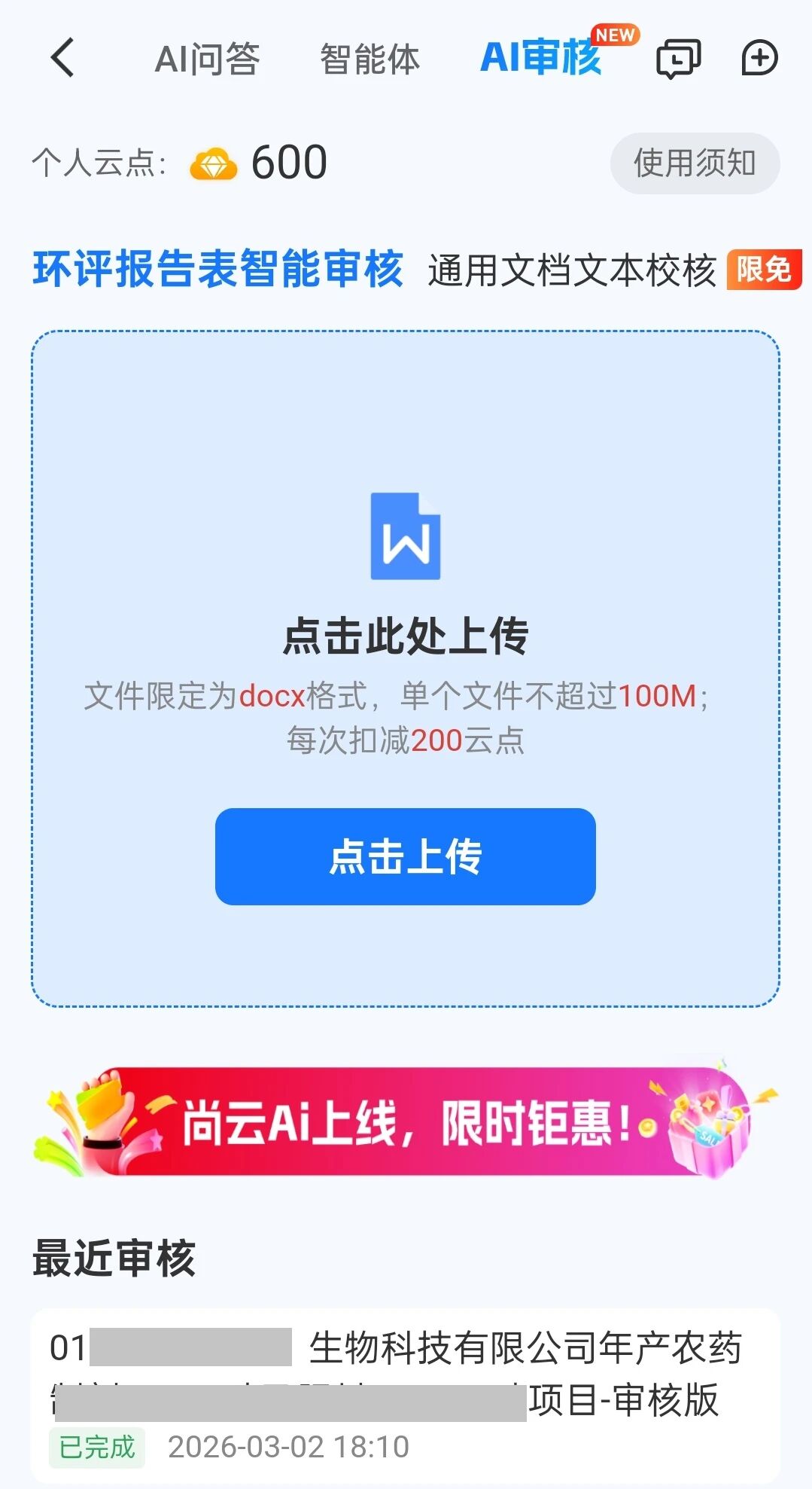 未使用过AI审核的用户可免费体验1次,立省200元;